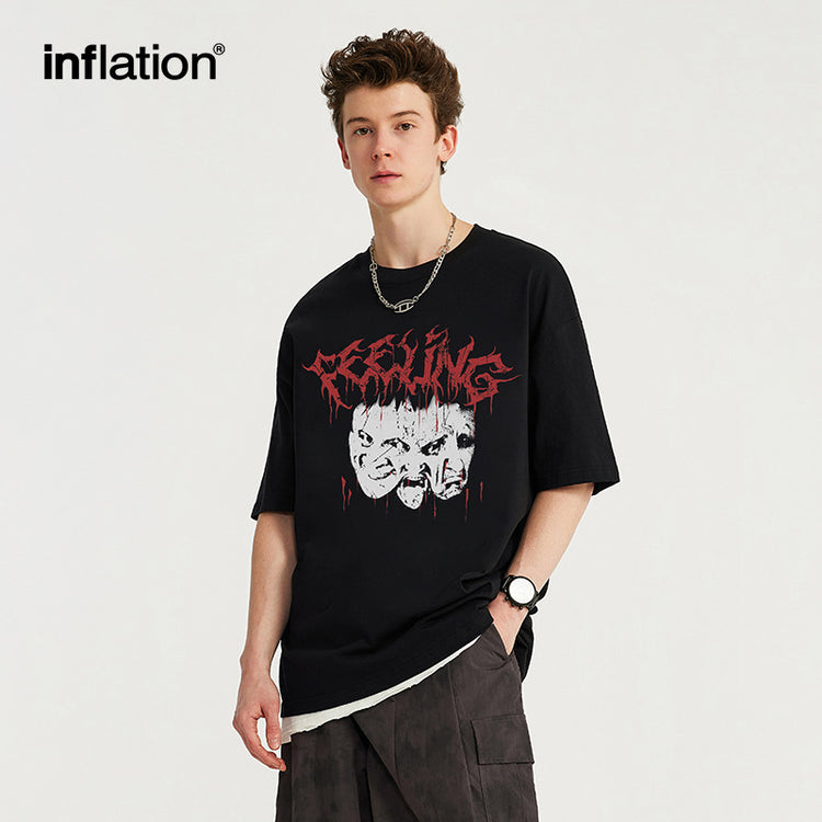 INF men's | emotional face Gothic printed T shirt new street loose round neck short-sleeved top