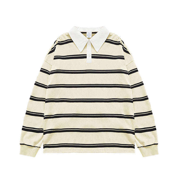 INF men's | lapel striped wash long sleeve T-shirt new fashion brand American retro Polo long T