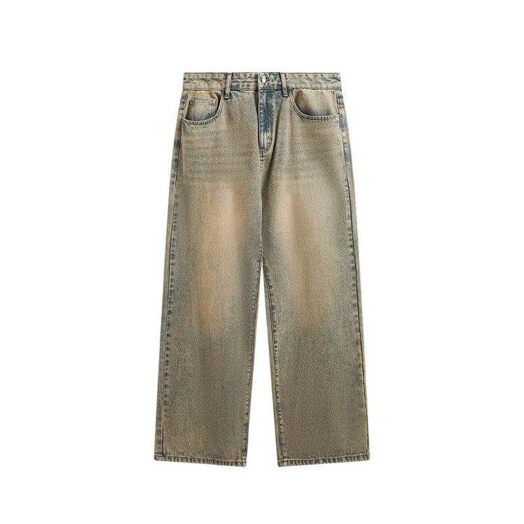 INF men's | mud dyed old wide leg jeans spring summer fashion brand street loose straight trousers