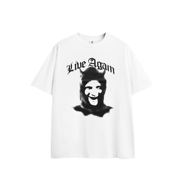 INF men's | parody devil face printed T-shirt fashion loose personality male round neck short sleeve