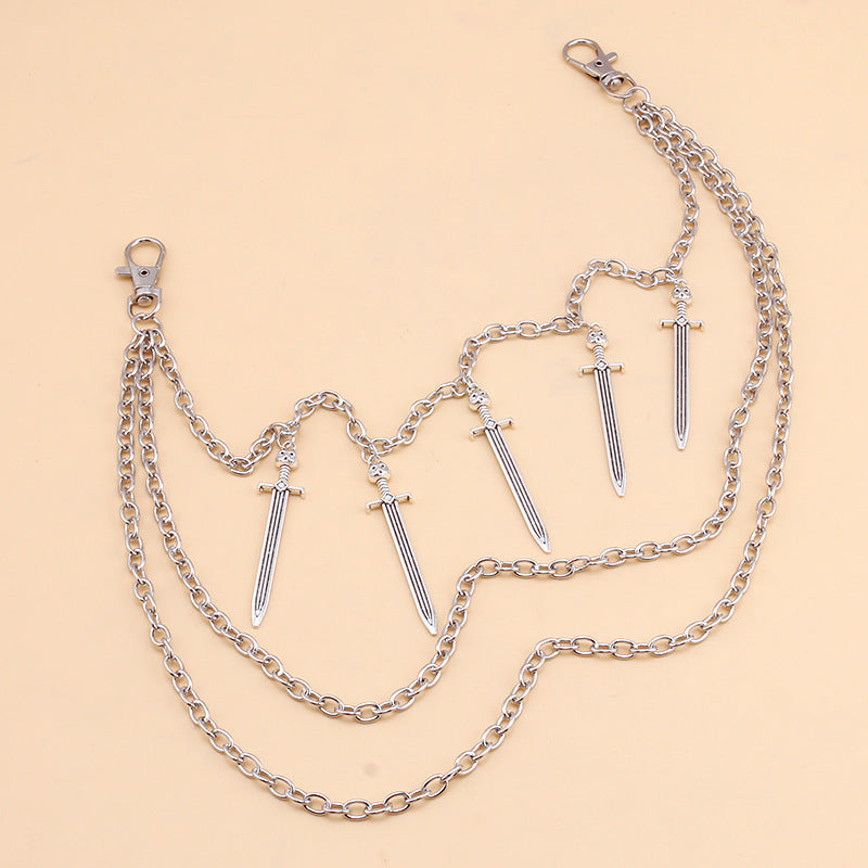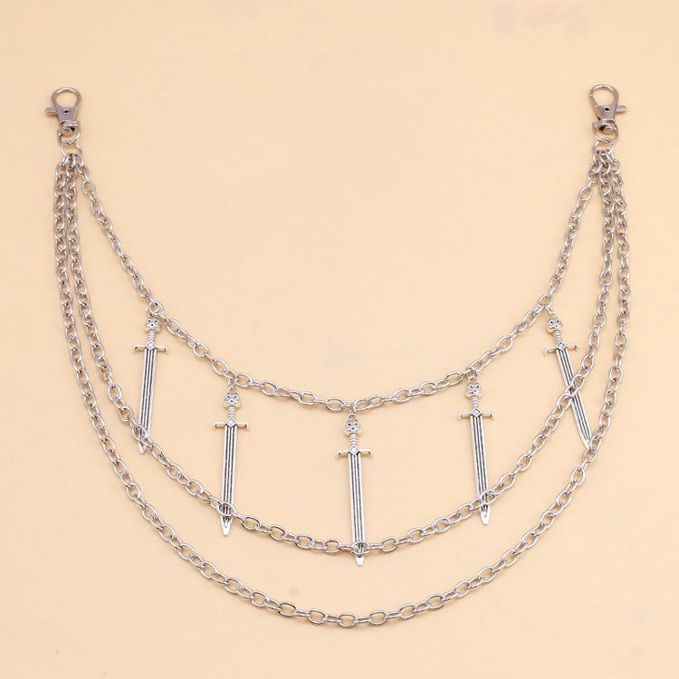 Bearing Sword Pendant Waist Chain Layered Retro Chain