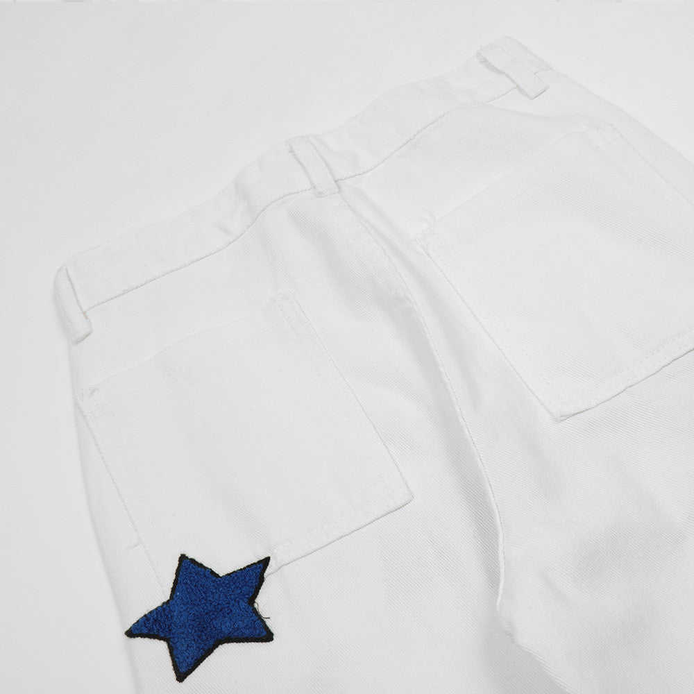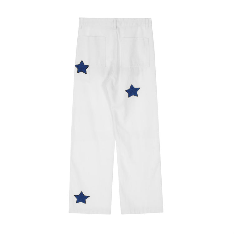 Flocking embroidery alphabet five-pointed jeans men's fashion brand American design sense straight nine-point pants casual pants
