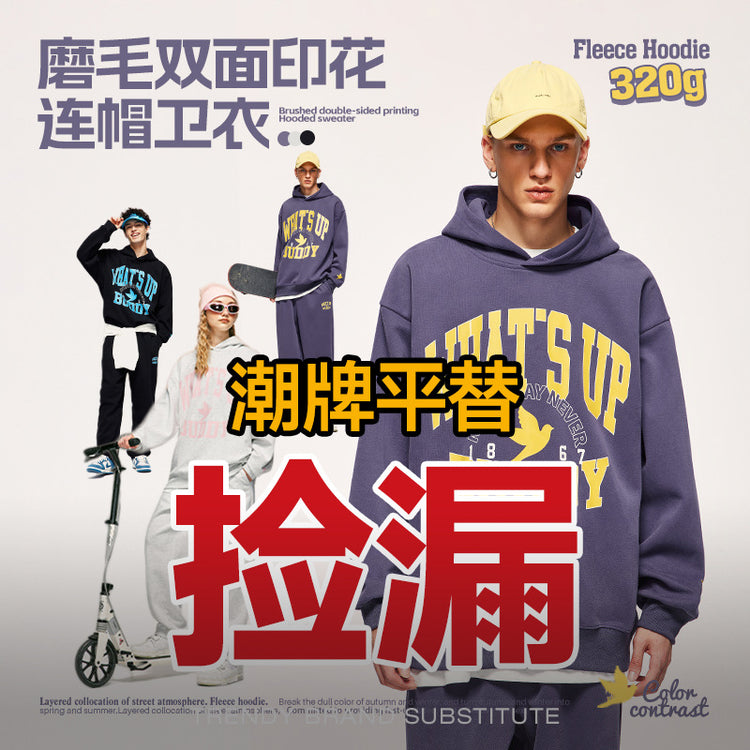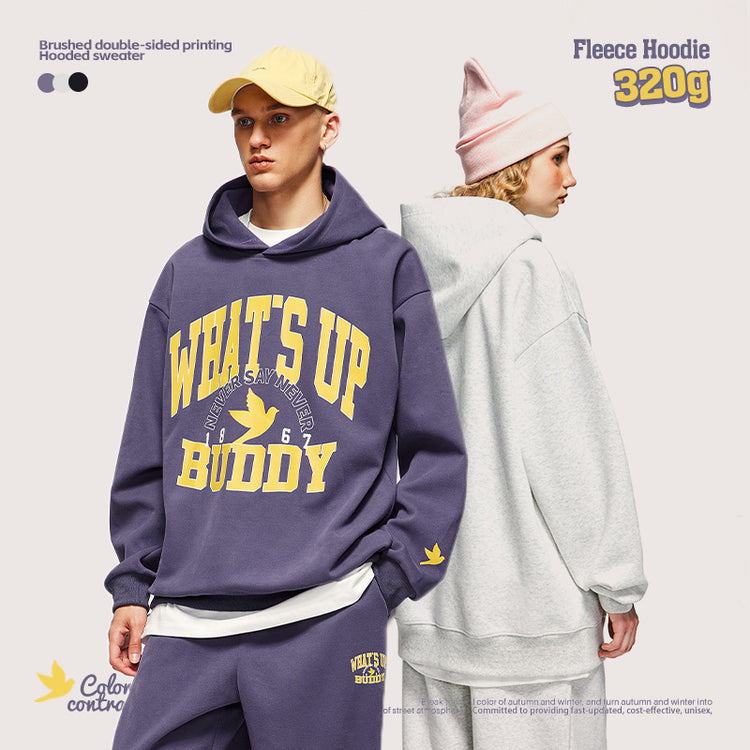 INF men's |320g Heavy College wooled double-sided printed hoodie Fall/Winter fashion loose top