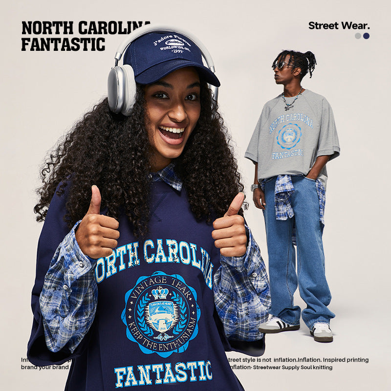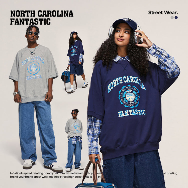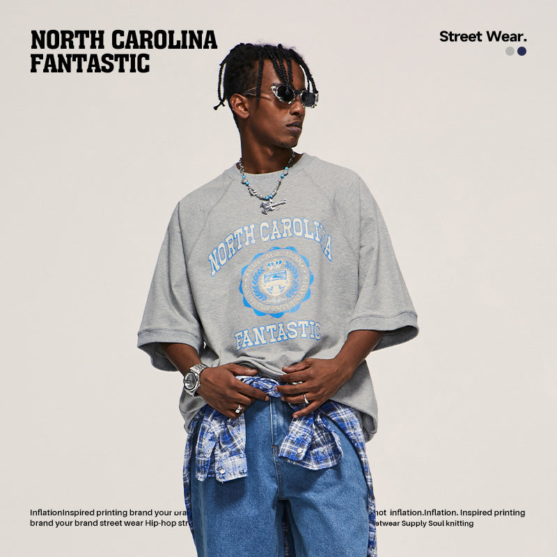INF men's | American badge broken Spaceship letter printed T-shirt fashion brand with shoulder sleeve men's short sleeve