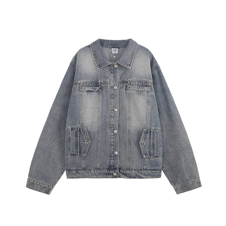 INF men's | American vintage wash denim jacket Fall/Winter Fashion brand riveted design coat