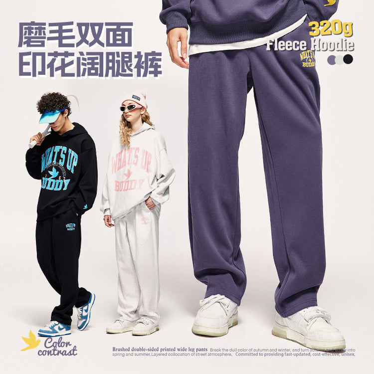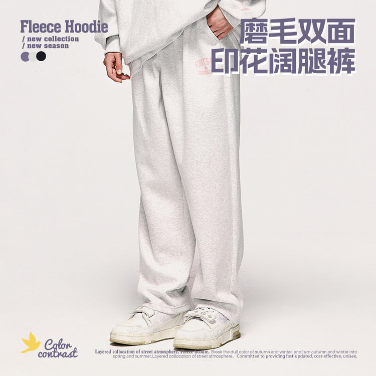 INF men's | autumn and winter woolly printed wide leg sweatpants men's fashion brand casual sports straight pants