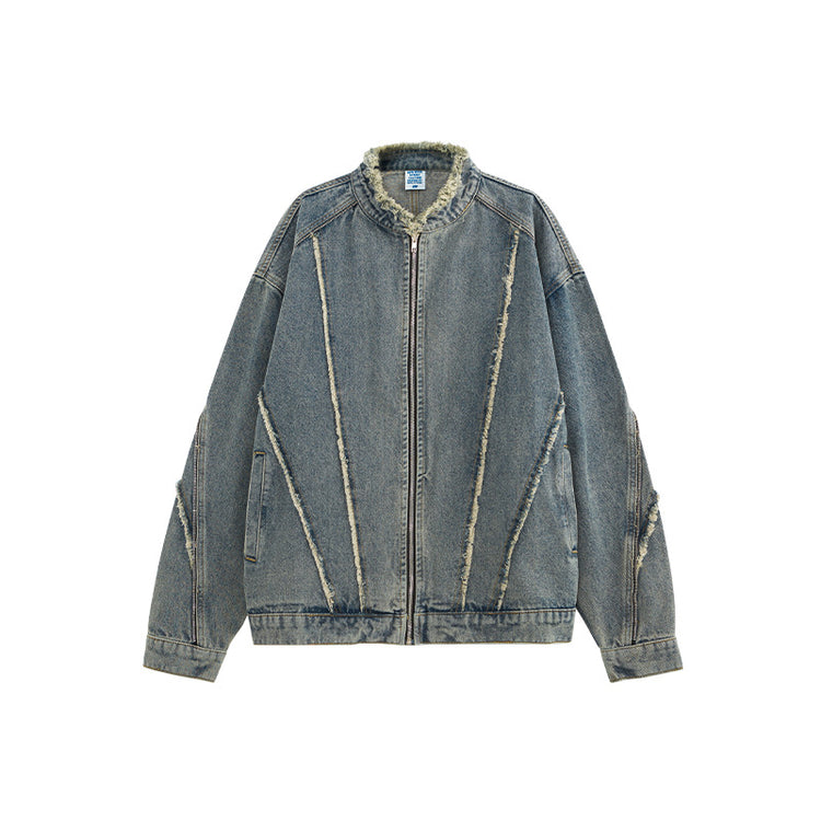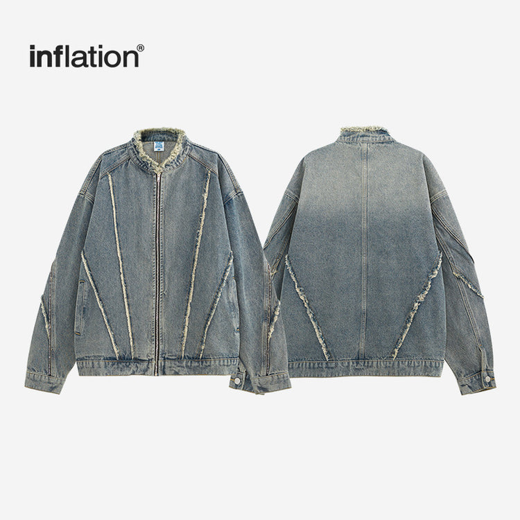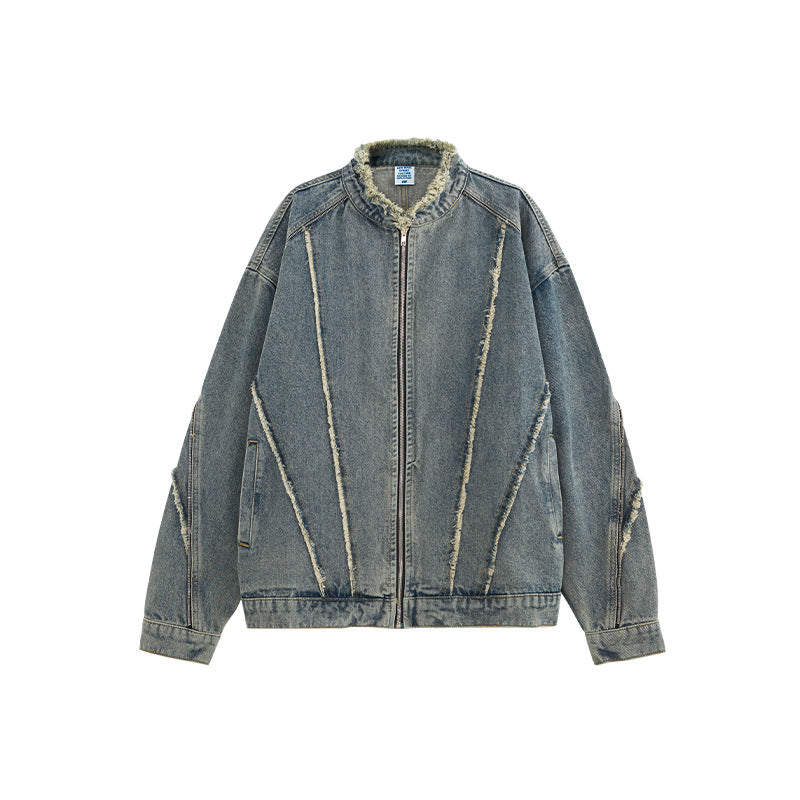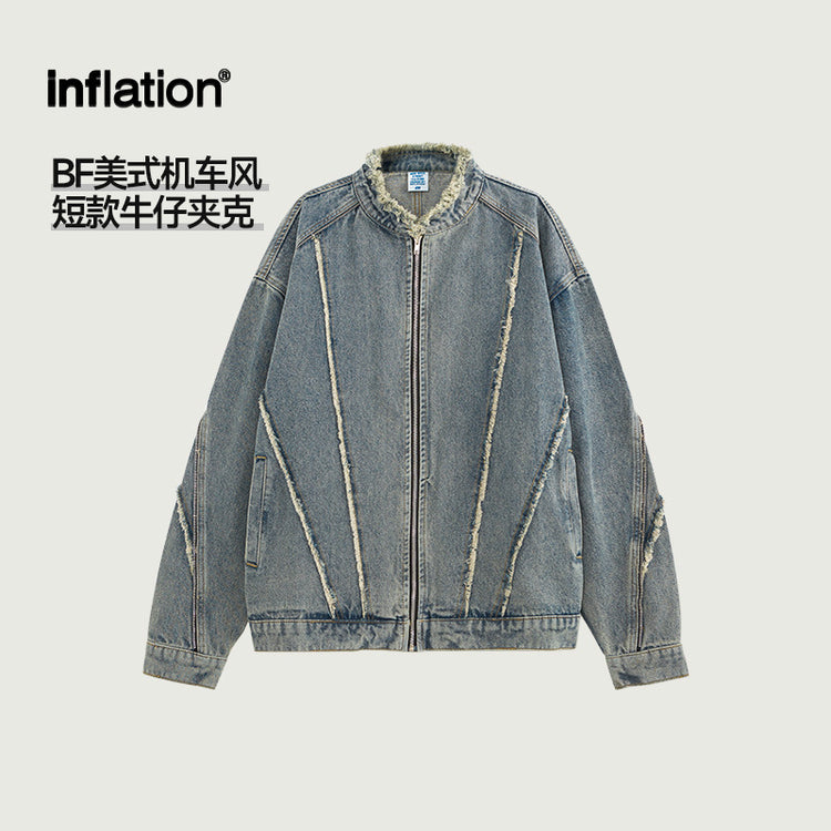 INF men's |BF American motorcycle style short denim jacket Autumn and winter fashion brand raw edge cut coat