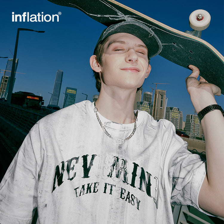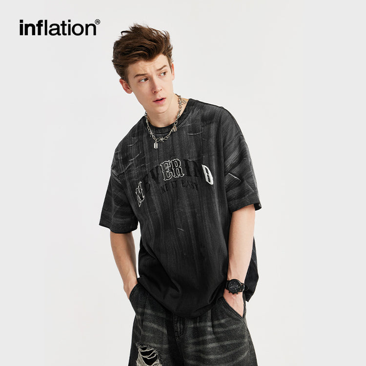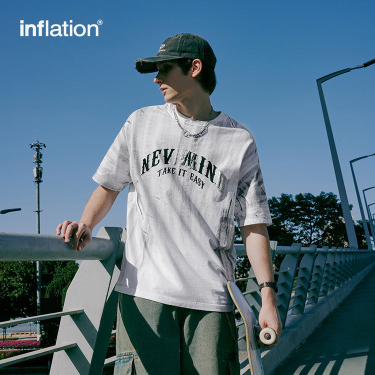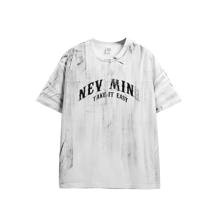 INF men's | brush color heavy process imitation silver hair bubble printed T-shirt spring summer fashion brand loose short sleeve