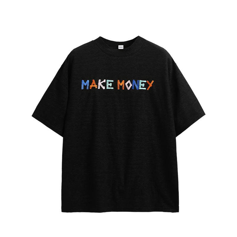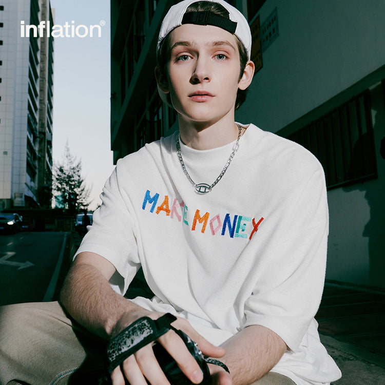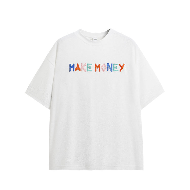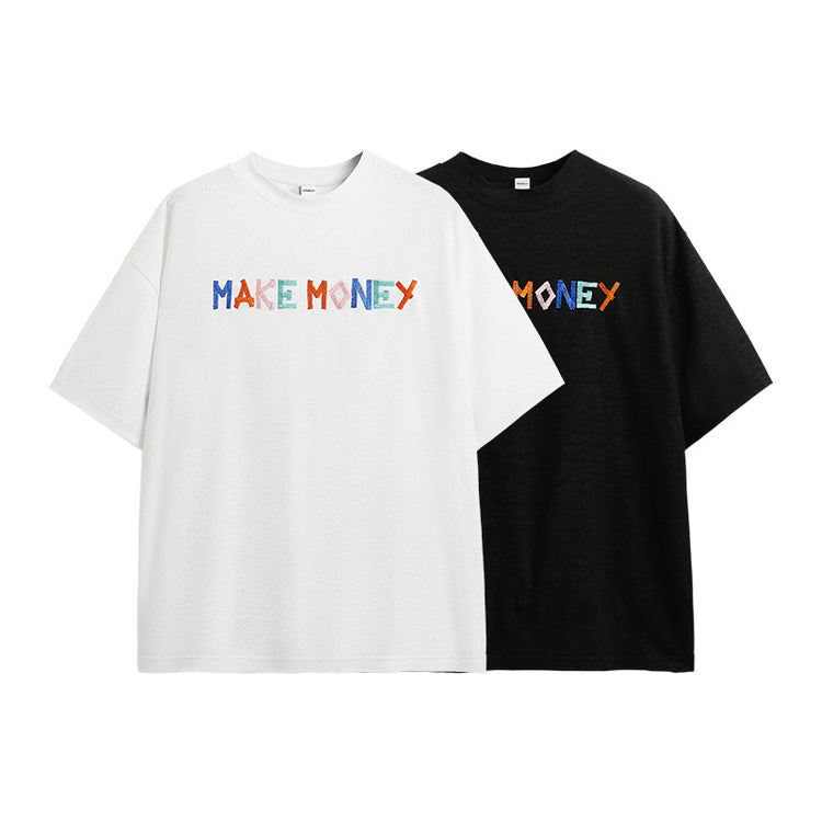 INF men's | color contrast texture terry cloth embroidery T-shirt spring summer new loose fashion brand letter short sleeve men