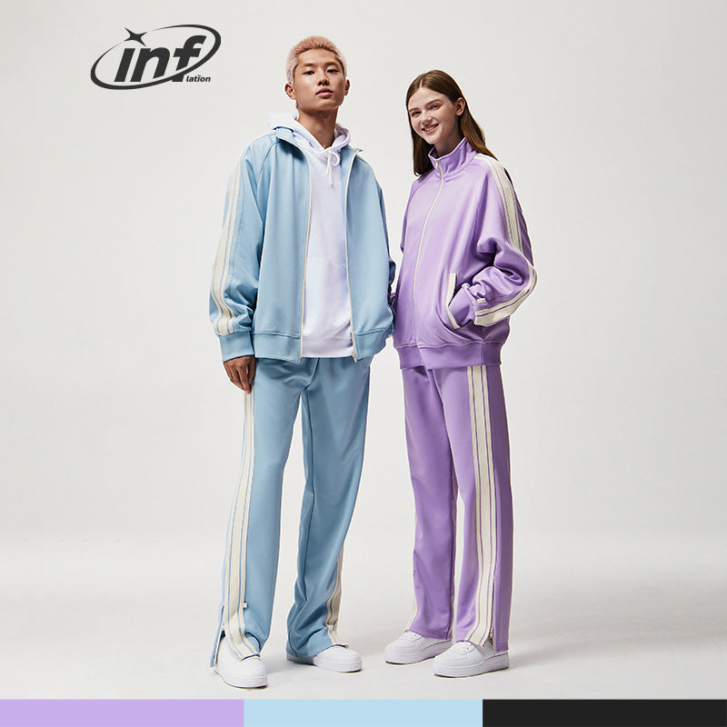 INF Men's | Cream contrasting yarn-dyed zipper Coat Autumn/Winter College lapel ing jacket for men