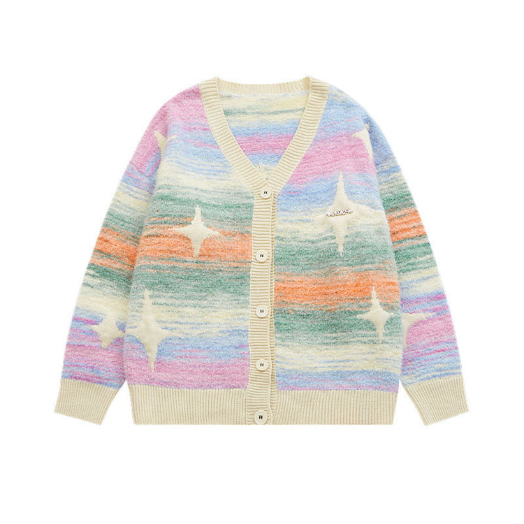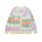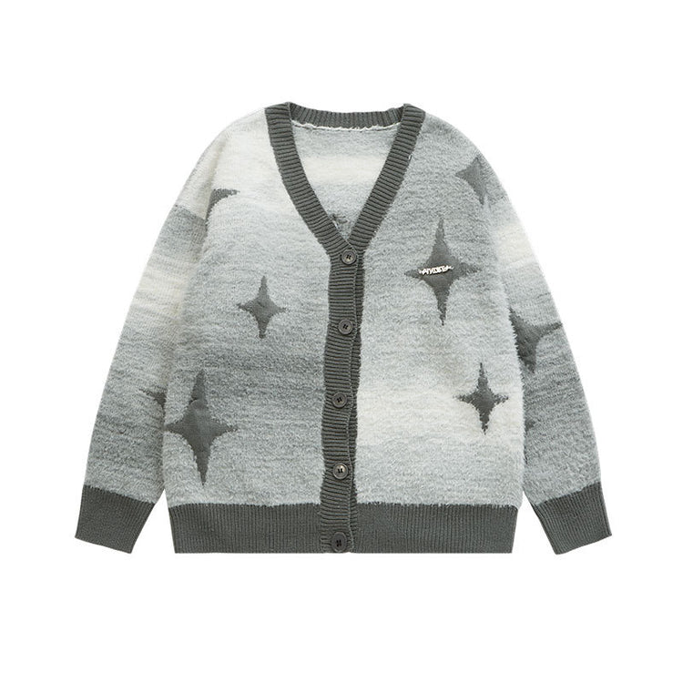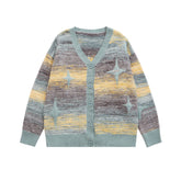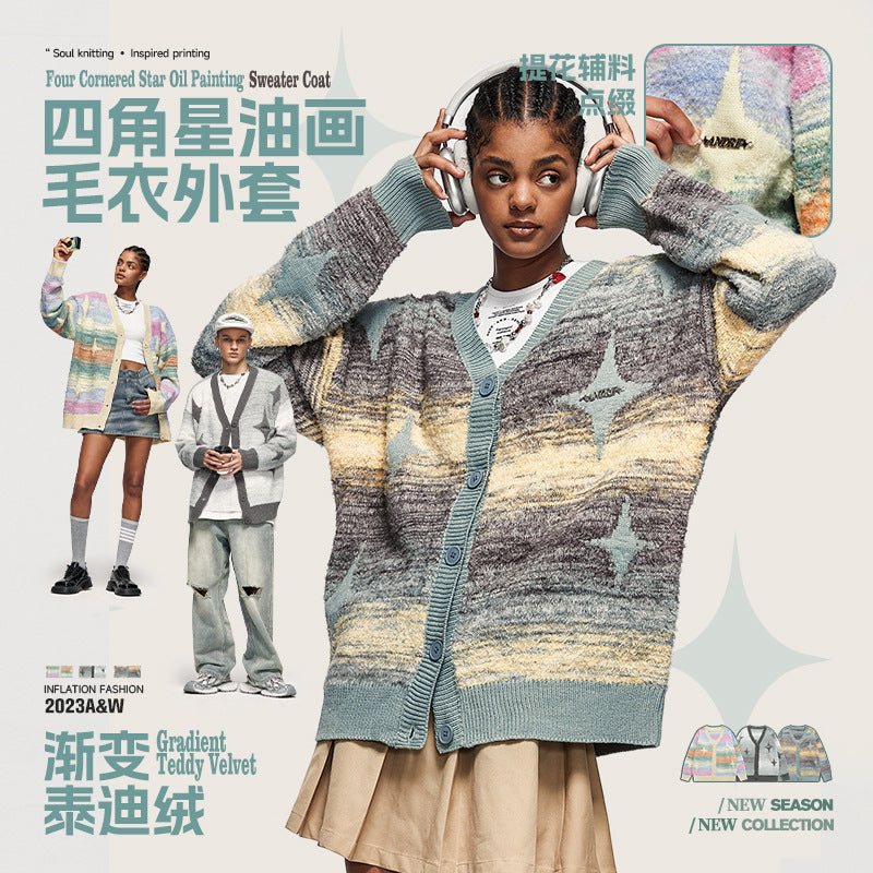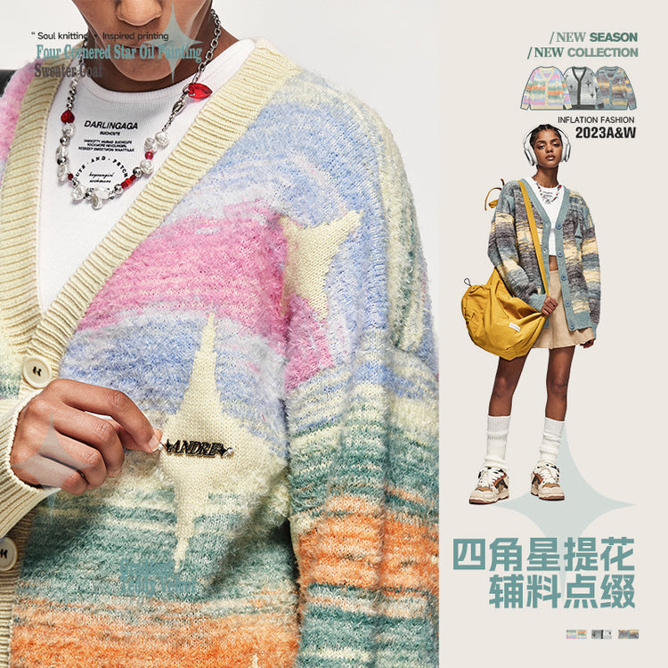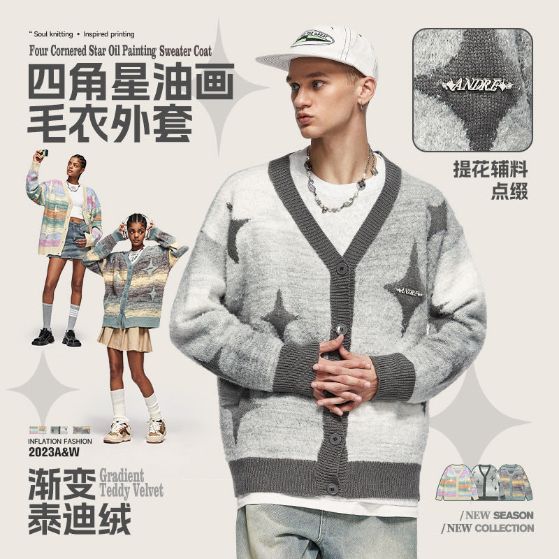 INF men's | four-point star oil painting knit autumn and winter tide brand loose teddy cashmere cardigan coat