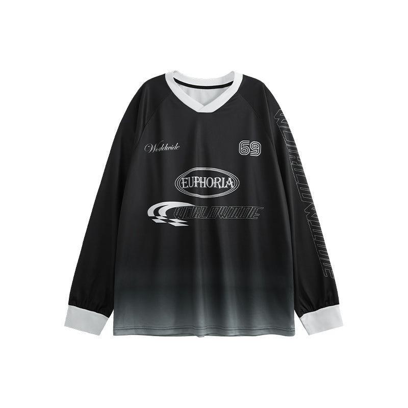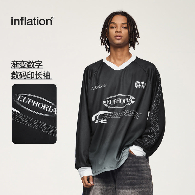 INF men's | gradual digital digital printing long sleeve spring summer street fashion brand casual loose T-shirt men