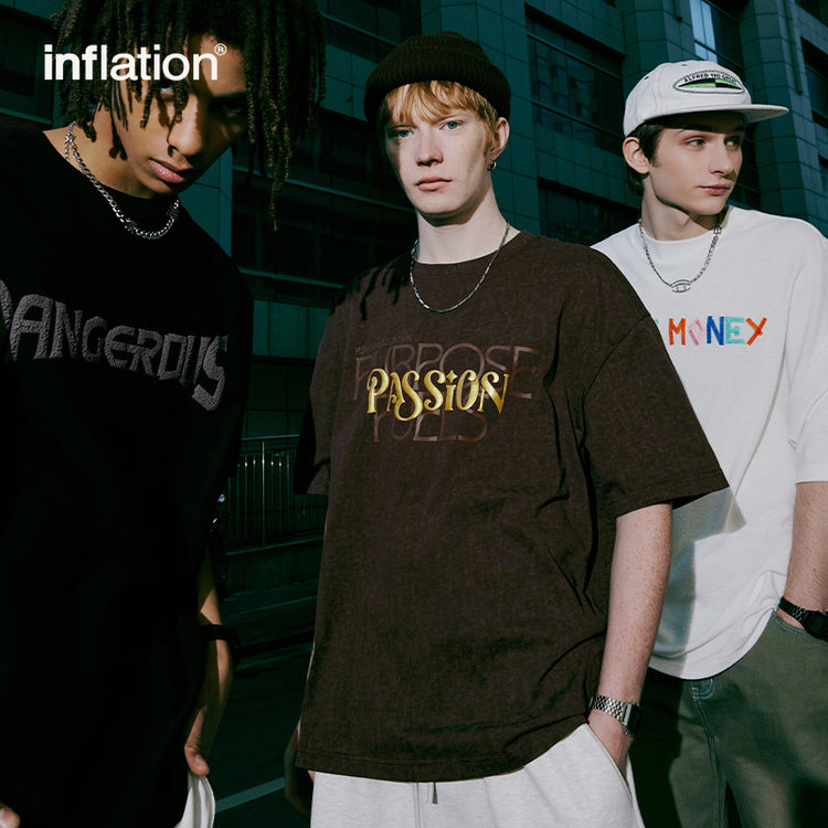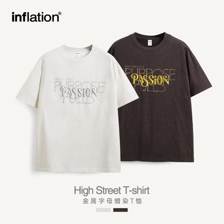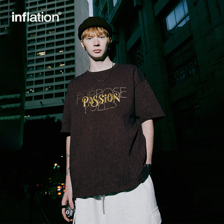 INF men's | heavy metal letters batik T-shirt spring summer loose fashion brand men's round neck shirt