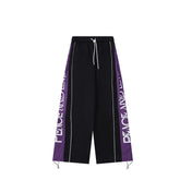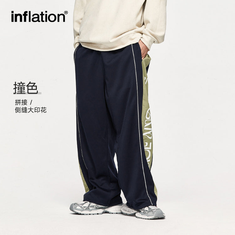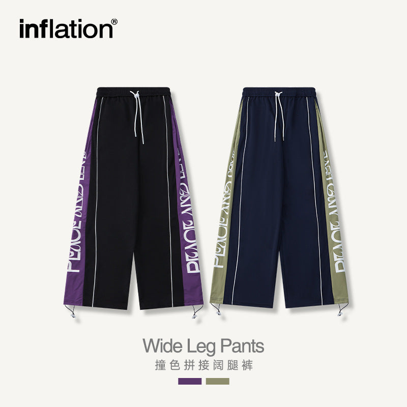 INF men's | High street color contrast splicing large print wide leg pants spring summer pleated splicing sports pants