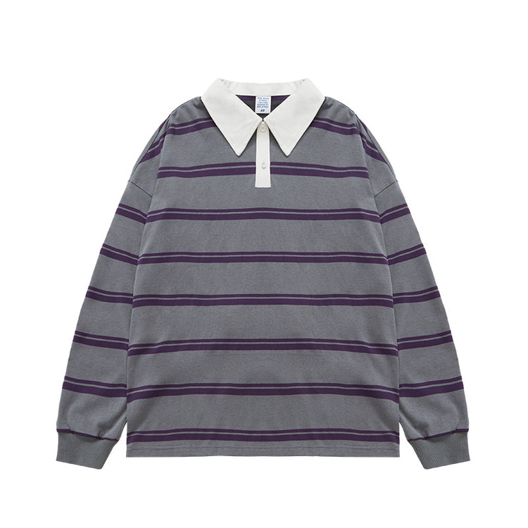 INF men's | lapel striped wash long sleeve T-shirt new fashion brand American retro Polo long T