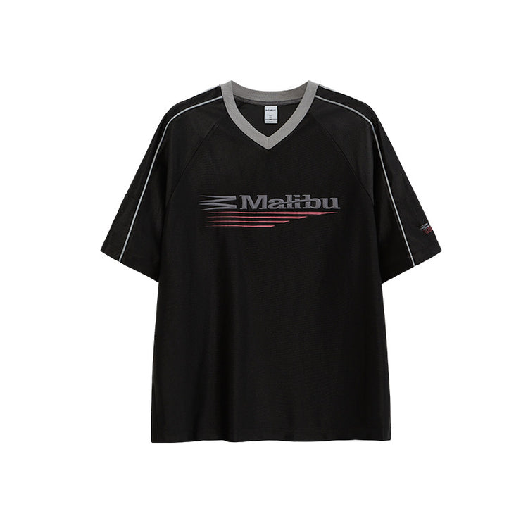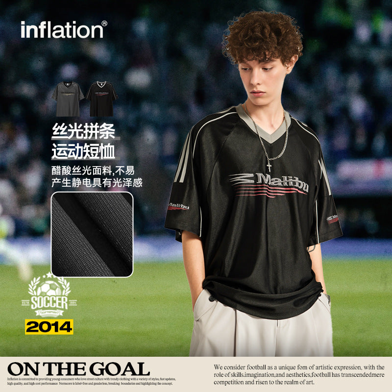 INF men's | mercerized splice strip sports T-shirt Spring summer retro sports casual shoulder short sleeve T-shirt