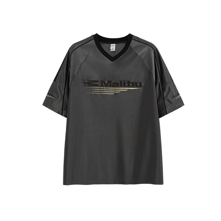 INF men's | mercerized splice strip sports T-shirt Spring summer retro sports casual shoulder short sleeve T-shirt