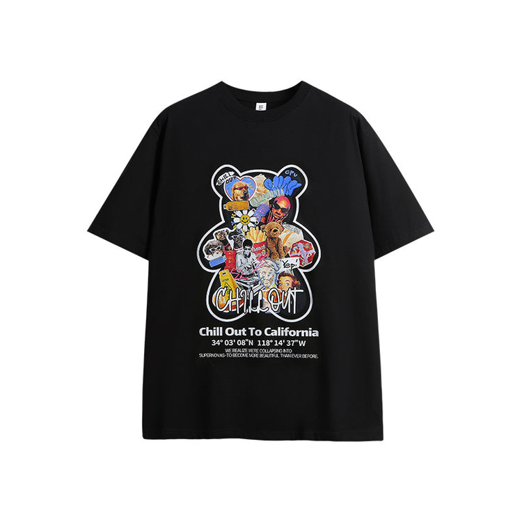 INF men's | spoof collage bear print T-shirt new street loose pure cotton round neck short sleeve