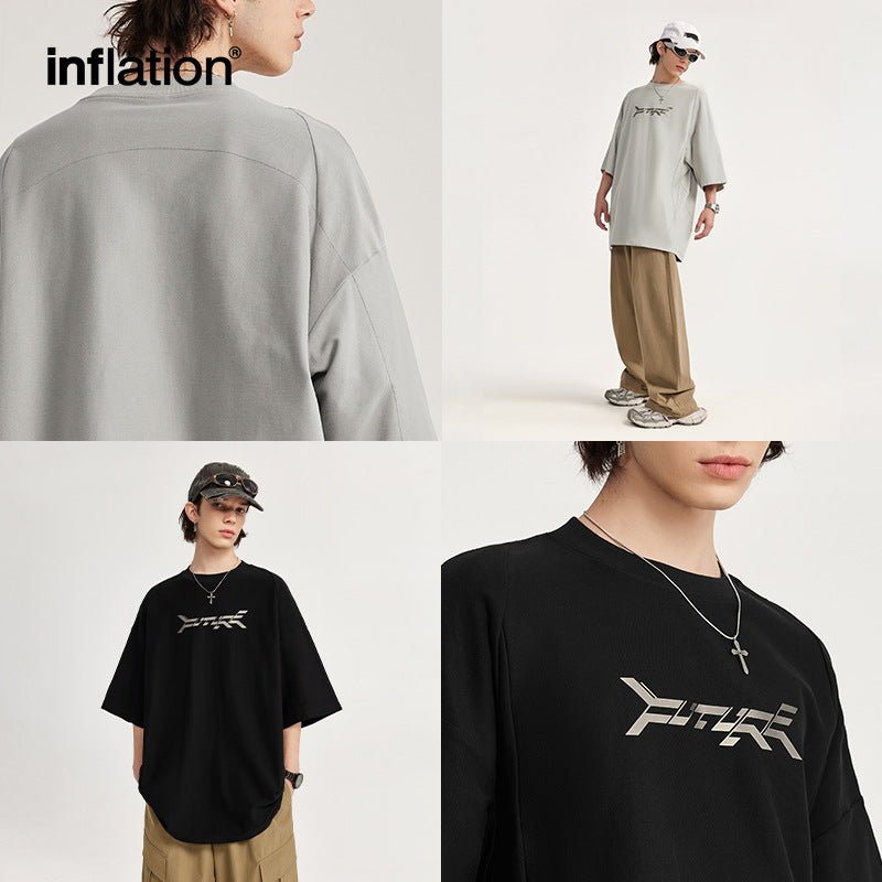 INF men's | three-dimensional cut twill T-shirt spring and summer fashion brand American street loose short sleeve