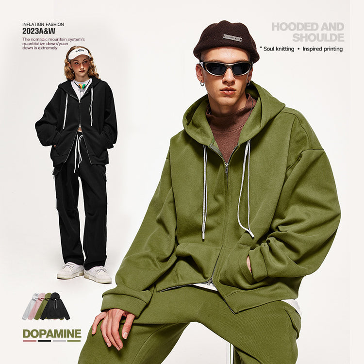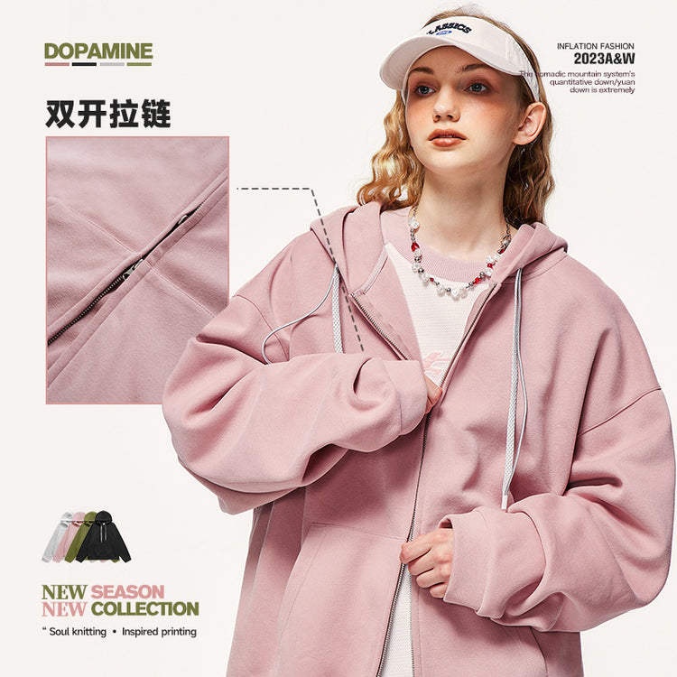 INF men's | version candy color hooded coat autumn and winter fashion brand double zipper hoodie for men and women