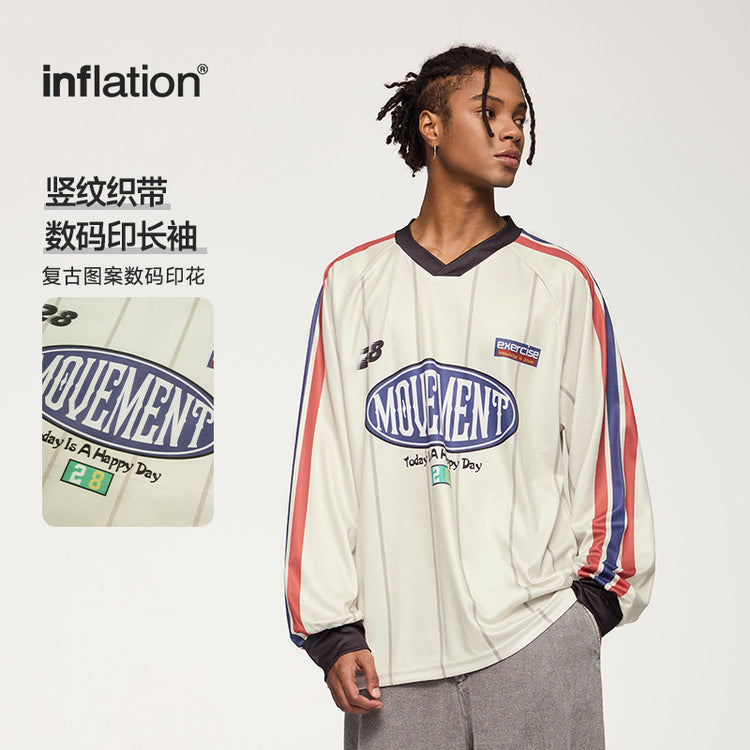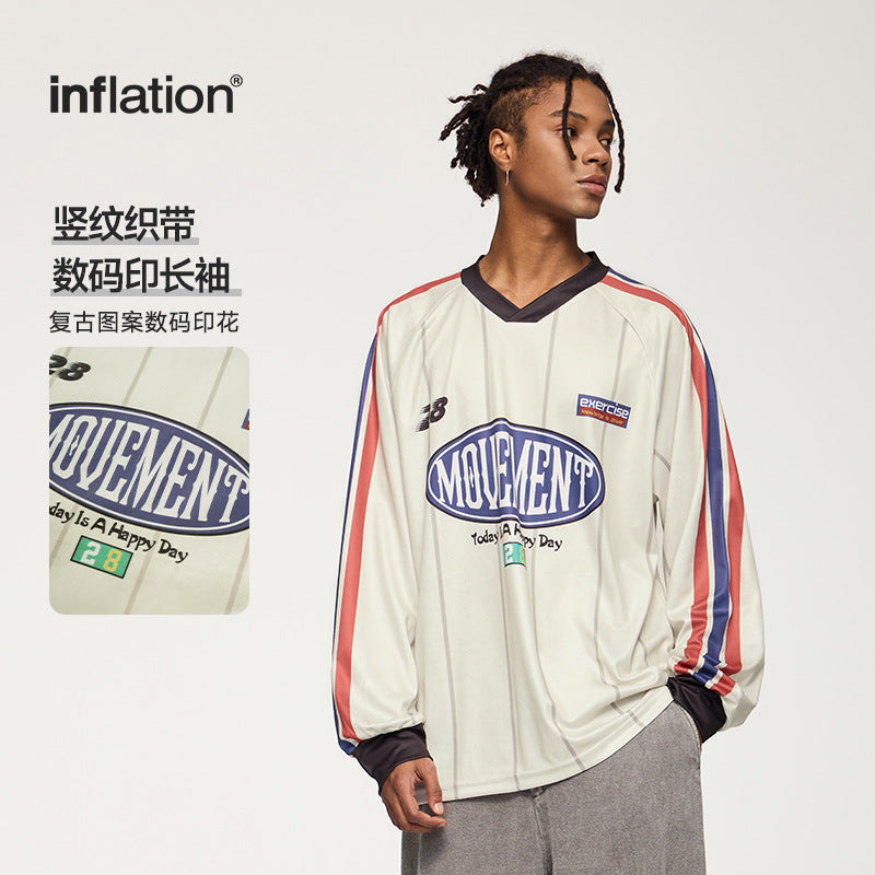 INF men's | vertical woven with digital printing long sleeve autumn and winter new retro baseball sports casual T-shirt