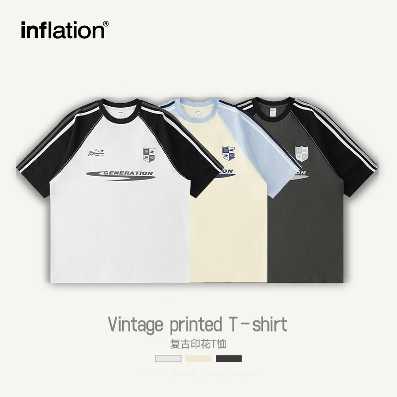 INF men's | vintage printed T-shirt Spring/summer new American retro sports style foam printed short sleeve