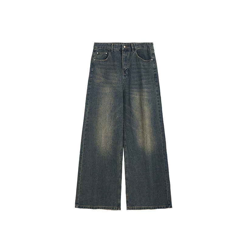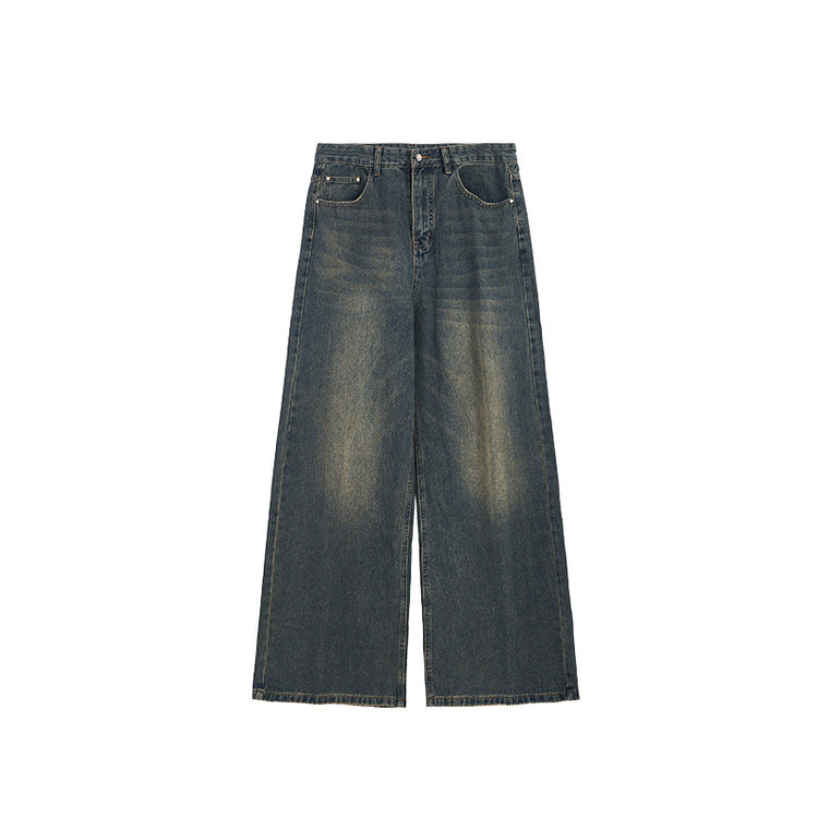 Jishow men | classic mopping pants Autumn and winter fashion brand American street spray monkey wash jeans