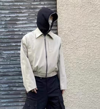 Niche high street casual solid color multi-pocket loose cropped jacket jacket vibe wind men