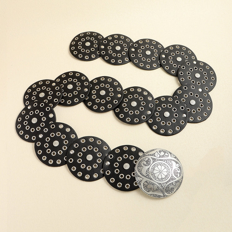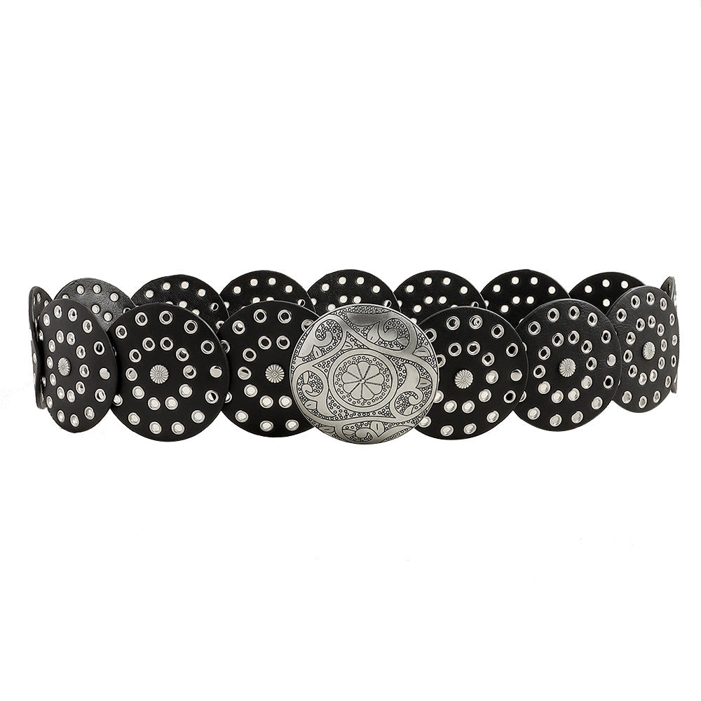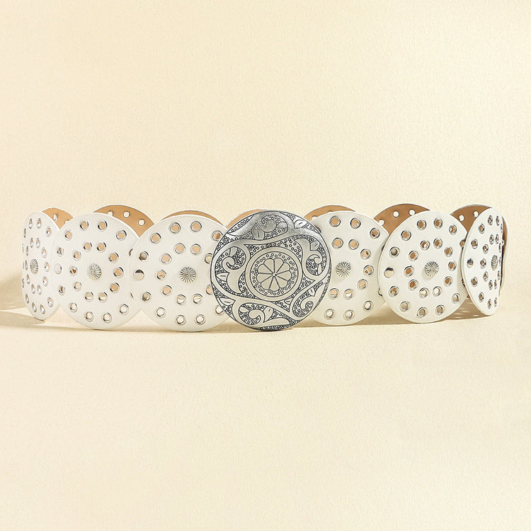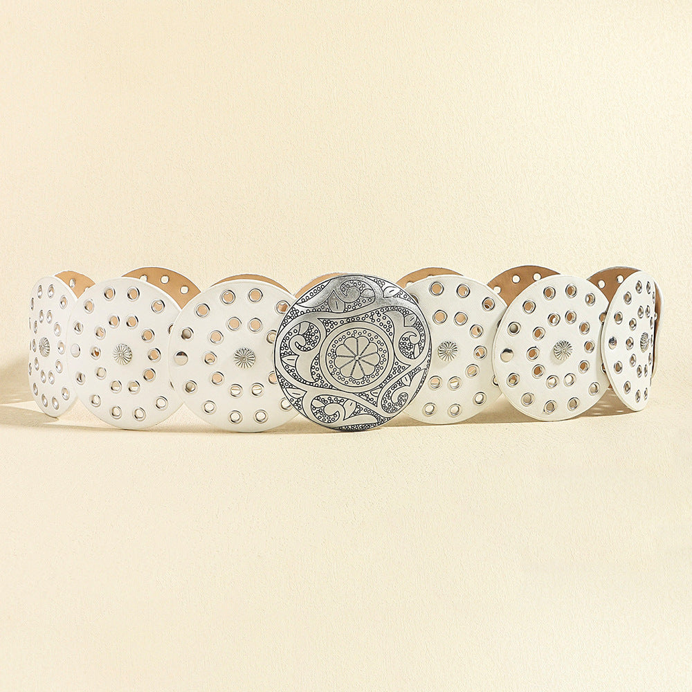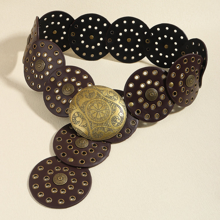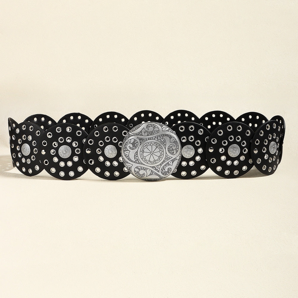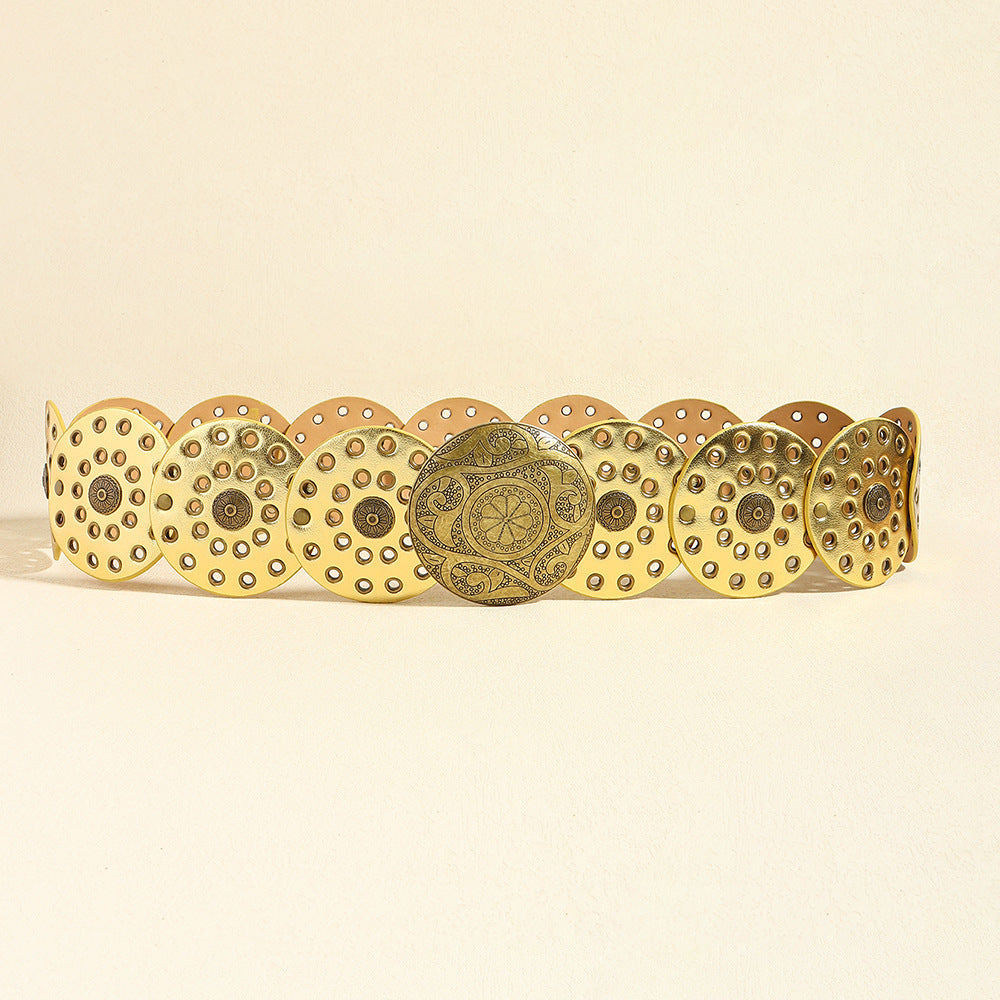 Retro Women's Round Hollow Metal Wide Belt