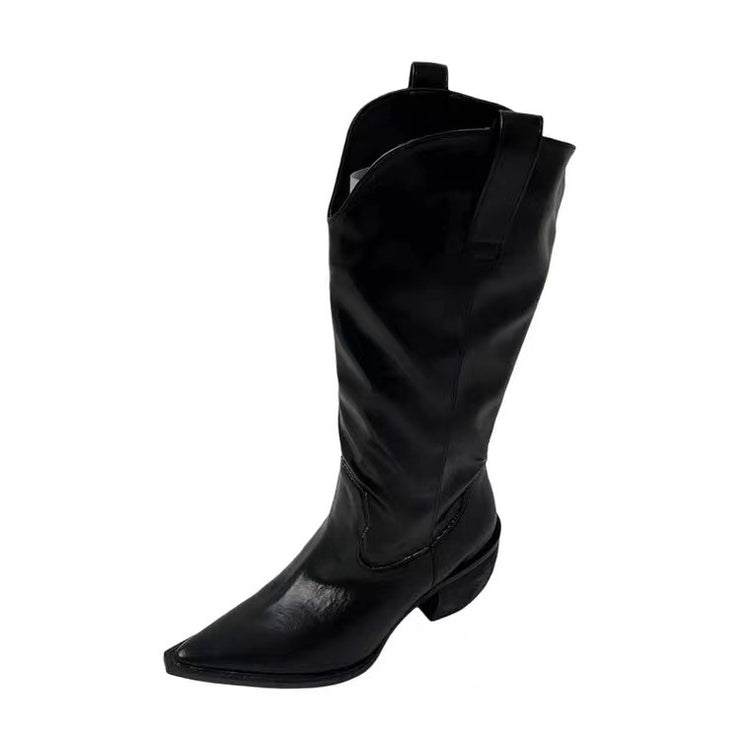 Western Cowboy Boots With Pointed Toe And Thick Heel